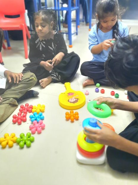 On 16th June 2025, our school warmly welcomed 25 new students and their families. The day began with smiles, photo sessions, and gentle interactions to ease children into the school environment. Based on initial assessments, children were placed in suitable classrooms tailored to their developmental levels. Fun activities like clay modeling, ring tower games, and sensory toys helped engage them while promoting comfort and confidence. Meals were served hygienically, focusing on daily living skills. Staff from all departments worked closely to ensure a smooth start, while parents were guided and supported. The day ended on a positive note, setting a strong foundation for the year ahead.