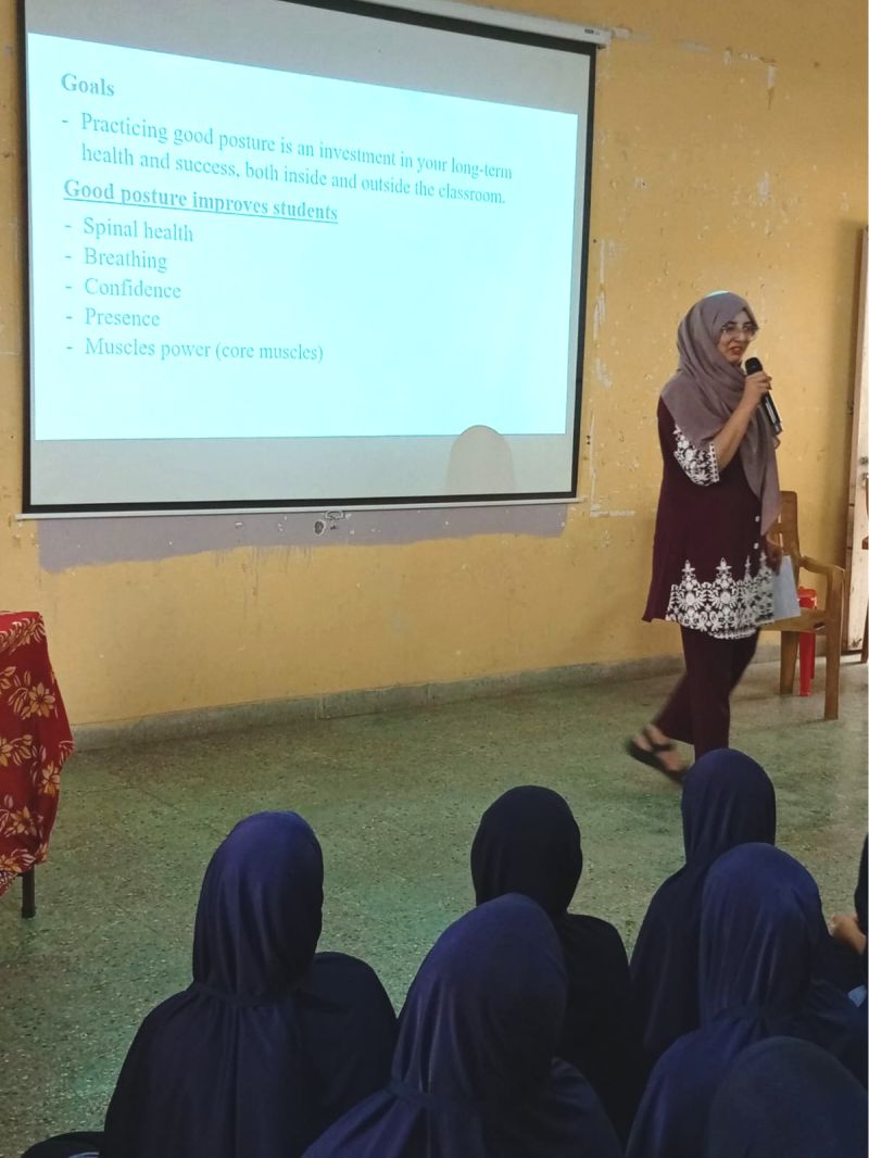 Mama Rehab Centre's Dr. Mubbassira, Dr. Humera, and Dr. Hakimah visited Valli Charitable Trust to celebrate World Physiotherapy Day by raising awareness about posture and Polycystic Ovarian Disease (PCOD) among girls. Dr Humera gave an informative talk on posture, while Dr Hakimah discussed PCOD and its impact. The event ended with a vote of thanks from Sajeda Tijoriwala Mam.