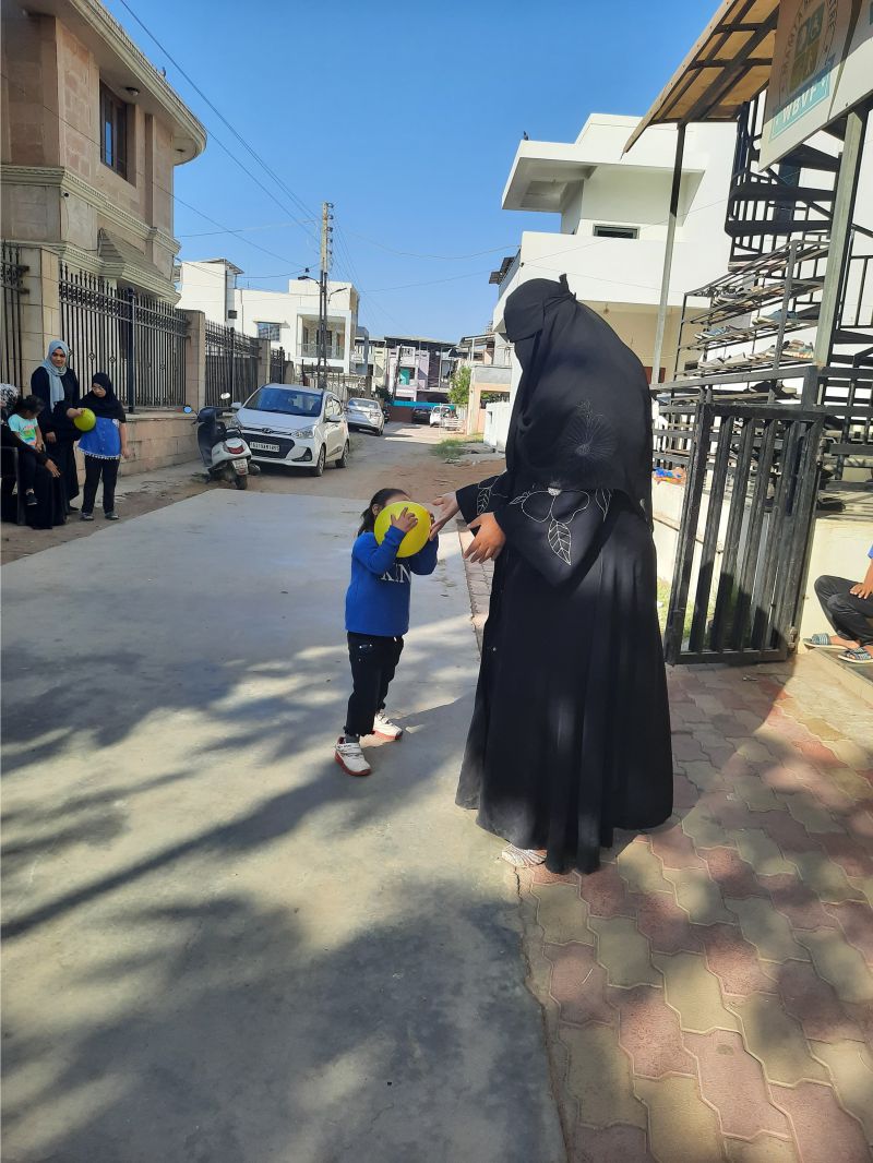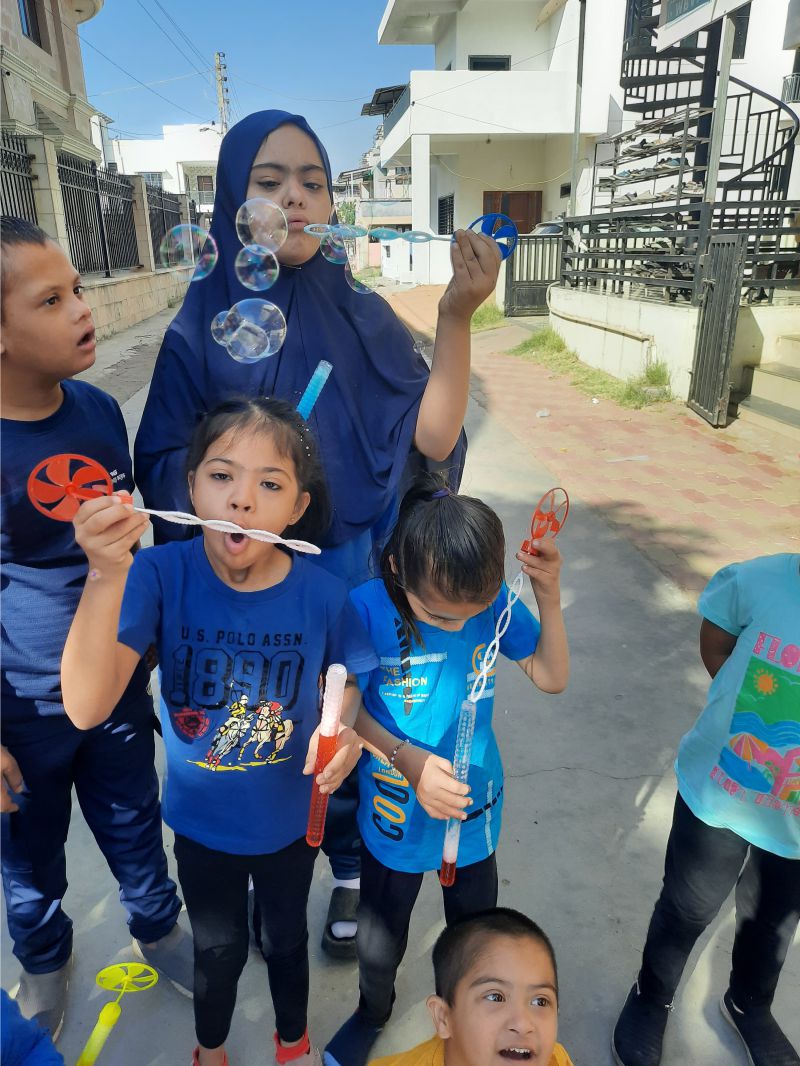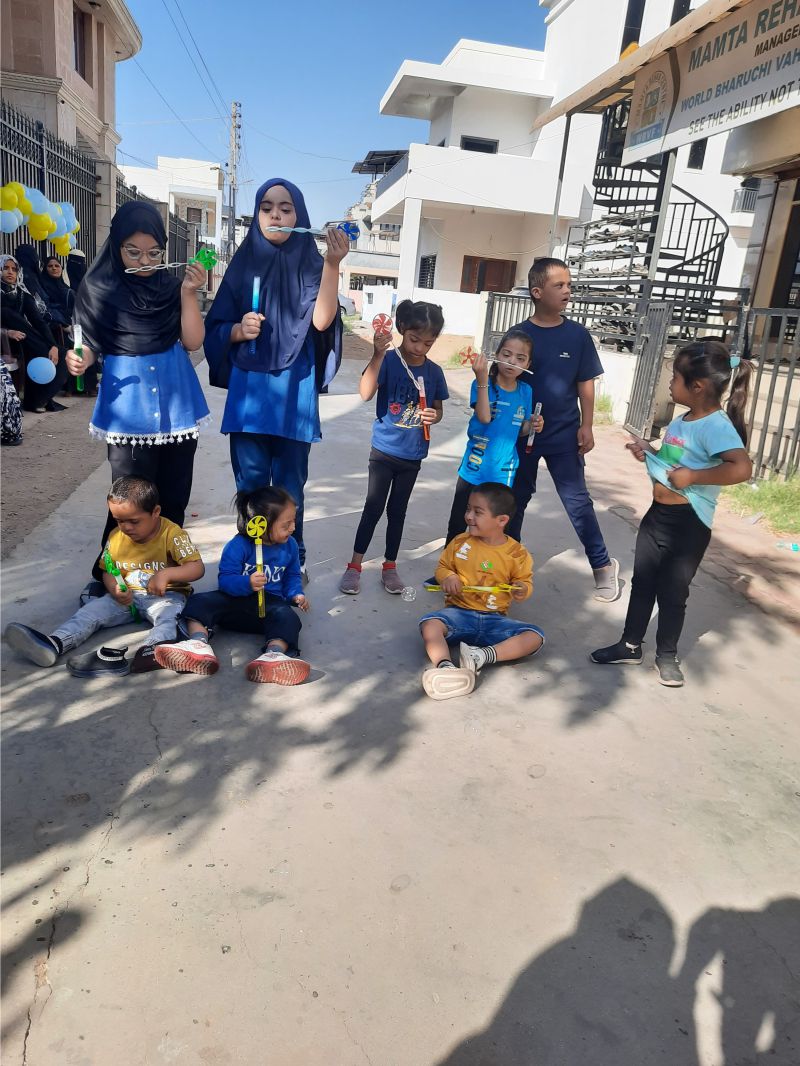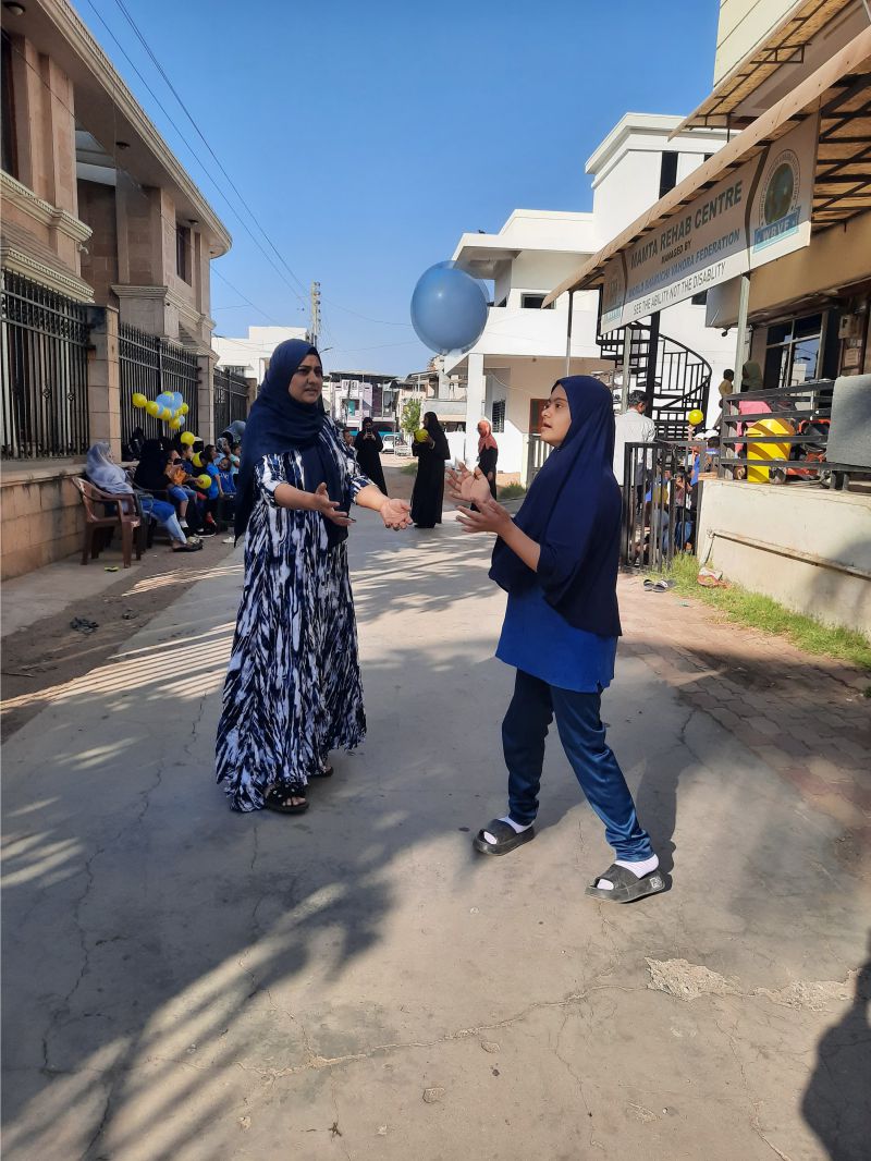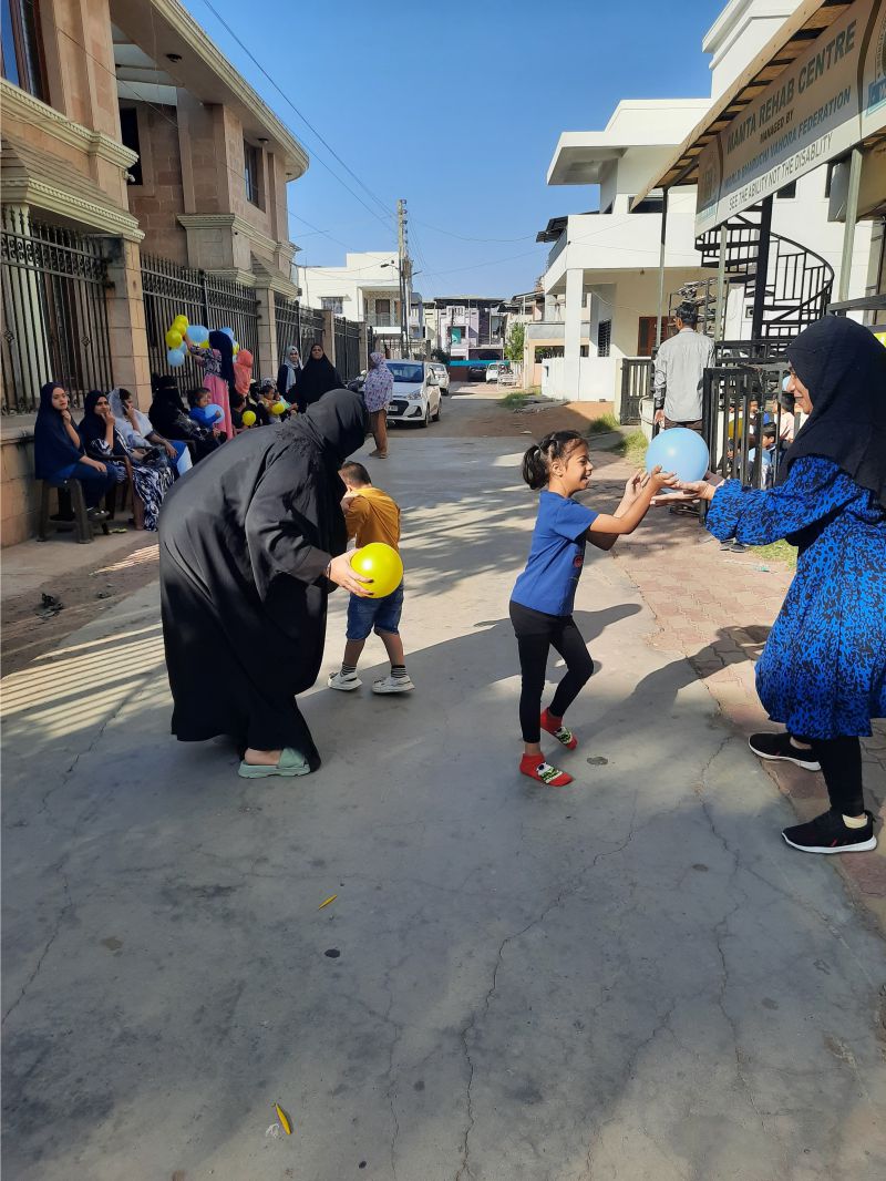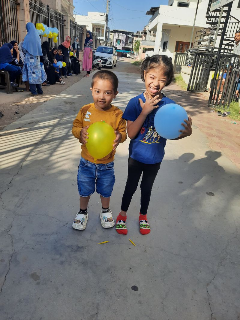 World Down Syndrome Day was celebrated on 21st March with a blue and yellow theme, symbolizing awareness and inclusion. The venue was beautifully decorated with blue and yellow balloons, creating a vibrant and cheerful atmosphere. To mark the occasion, participants wore mismatched socks, representing the uniqueness of individuals with Down syndrome. The event included engaging activities such as a balloon game with mothers, where they played together, strengthening their bond with their children. Another highlight was the bubble game, where children joyfully played with floating bubbles, filling the environment with laughter and excitement.